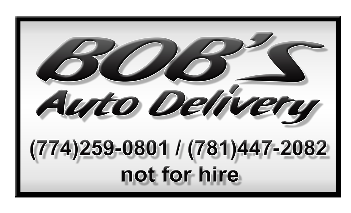 Size 10 inches by 18 inches Set of 2 Magnetics; Colors white/black lettering; Desired Fonts and Text Fat Bob’s Auto Delivery (fatcat#34) Large (774)259-0801/(781)447-2082 (arial bold) not for hire (arial bold)