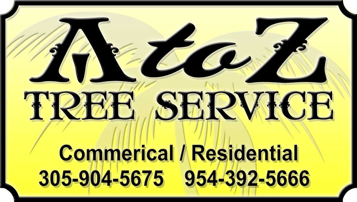 Size 14 inches by 24 inches Set of 2 Magnetics; Colors Yelllow/Green Background Black Lettering; Desired Fonts and Text A to Z Tree Service Picture of Palm Tree Commerical/Residential 305-904-5675 954-392-5666 Readable Letterstyle