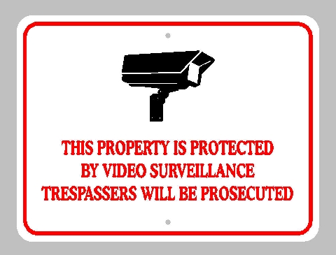 Metal Sign, Vinyl Worded 063 Aluminum, Type_of_Sign: exterior, Size_R_or_NR: 18″x24″, Color: RED LETTERS, Price: 36.20, Desired_Fonts_and_Text: Broadside put all caps THIS PROPERTY IS PROTECTED BY VIDEO SURVEILLANCE TRESPASSERS WILL BE PROSECUTED
