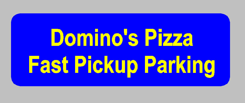 Type of Sign 6X18; Color blue background w/yellow lettering; Size R or NR reflective; Desired Fonts and Text Block lettering Domino’s Pizza Fast Pickup Parking