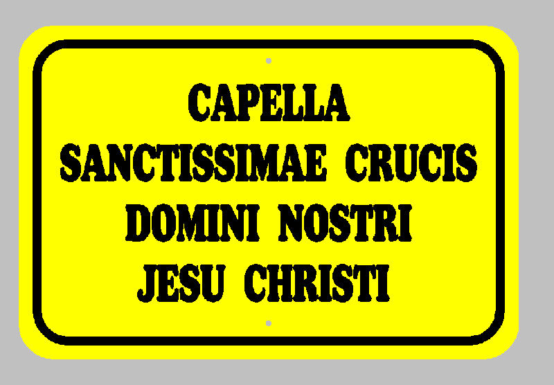 Type of Sign Name; Color Yellow; Size R or NR 18×12; Desired Fonts and Text Fonts Broadside Text CAPELLA SANCTISSIMAE CRUCIS DOMINI NOSTRI JESU CHRISTI Text should be centered;