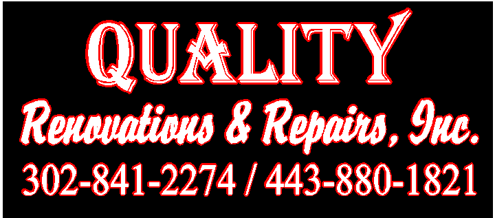 Lettering details: Type of Lettering Custom Truck Lettering; Size 15″ x 34″; Colors white with red outline; Desired Fonts and Text 1st line QUALITY – all upper case – font – Morocco – letter size 4″ – outlined – centered above other lines 2nd line Renovations & Repairs; Inc. – upper and lowercase – font – Brisk – letter size 3″ – outlined 3rd line 302-841-2274 / 443-880-1821 – font – Times Roman – letter size 2″ – outlined – centered below line 2 Please email or fax a sample for approval before sending –