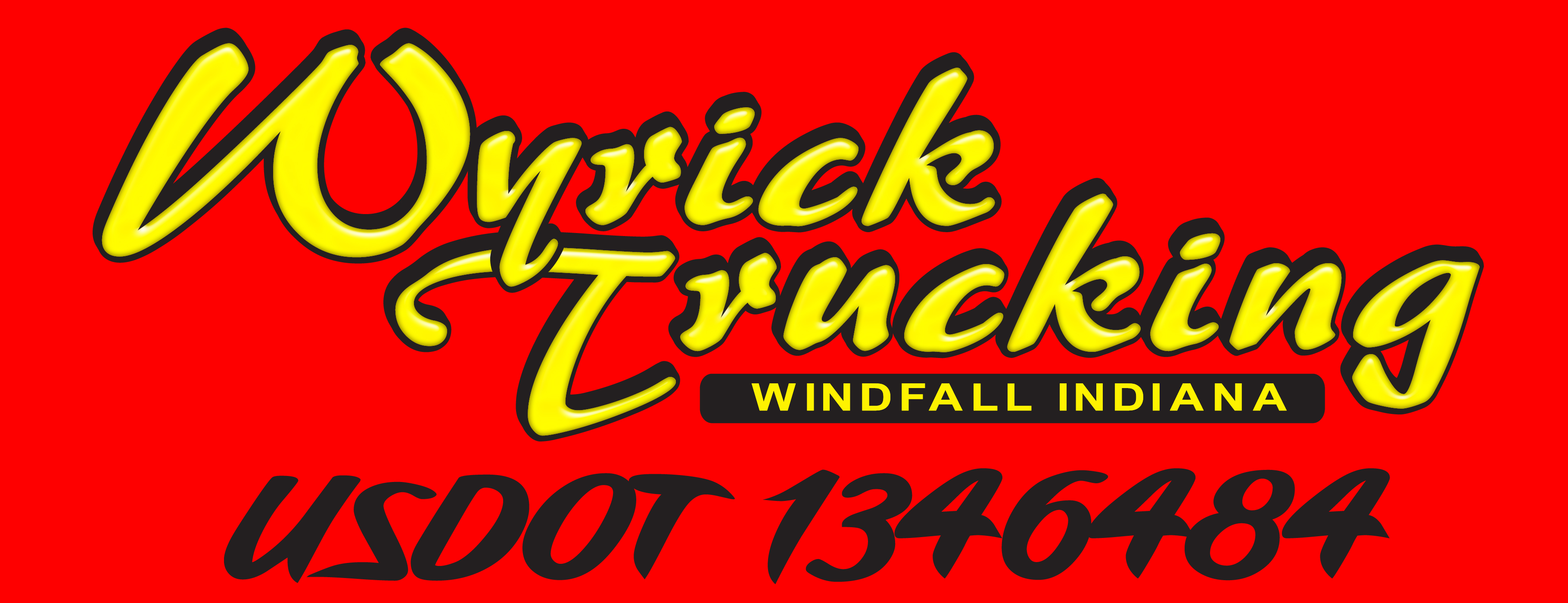 Type of Lettering Custom Truck Lettering; Size 10×26; Colors yellow with black upper left outline; Desired Fonts and Text Brush font Wyrick Trucking Leased To: USDOT 1346484