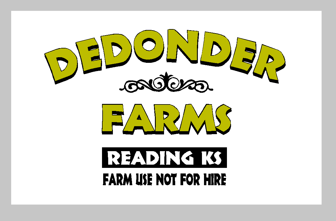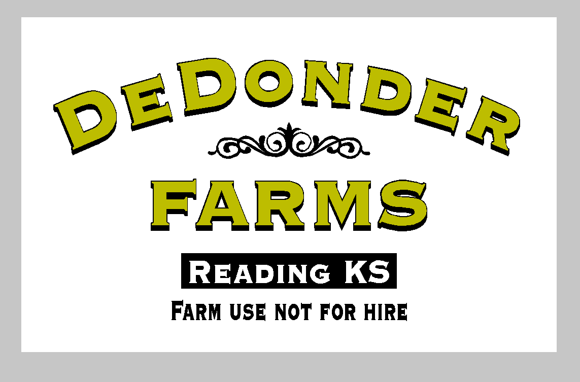 Sign Details: Type of Lettering Custom Truck Lettering; Size 28″ x 18″Colors black and maybe gold leaf; Desired Fonts and Text font- Broadside Text- DeDonder Farms Reading KS Farm use not for hire Door size on the truck is approximately 32″ wide by 20″ tall. Would like to have the name and town near the upper center part of the door and “farm use” near the bottom. We were thinking “DeDonder Farms” in large letters; “Reading KS” in smaller letters and the “farm use not for hire” line in smaller letters yet. “DeDonder Farms” in the gold leaf color – if it could be outlined in black since the door is white. If not possible just make it all black and the rest of the letters black. If you have better suggestions please try them or let us know thank you