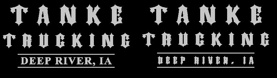 Truck lettering details: Size 18×22 Colors metal Flake Silver; Desired Fonts and TextFont – Slayer Text – TANKE TRUCKING DEEP RIVER; IA I want TANKE to have bigger font than TRUCKING and I want DEEP RIVER; IA to be smaller than both. I want the whole sign to be centered