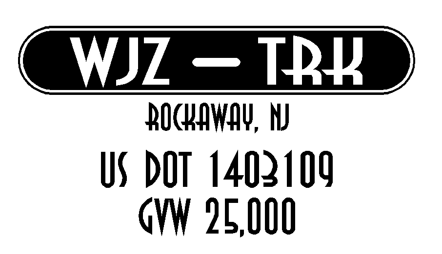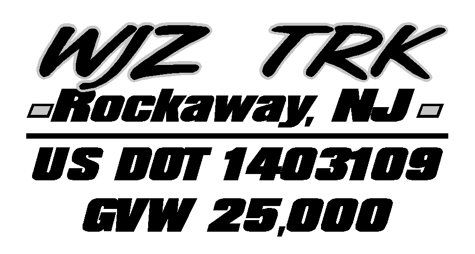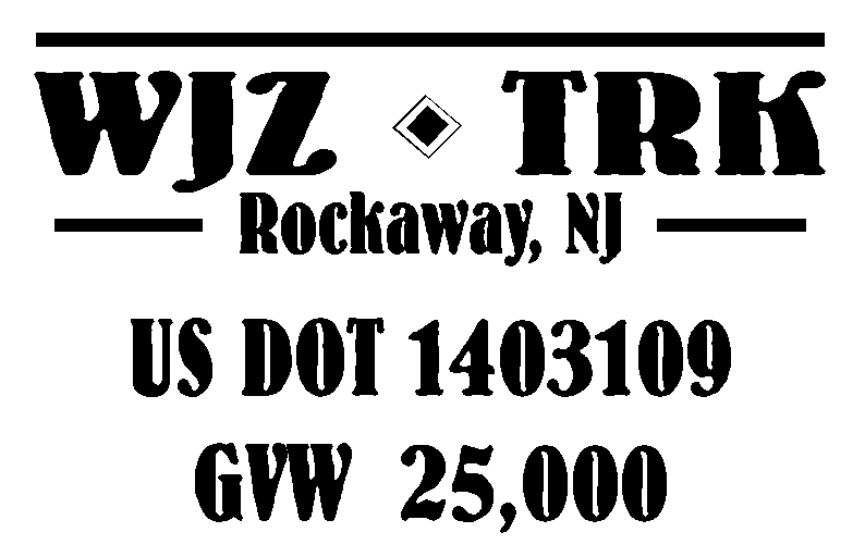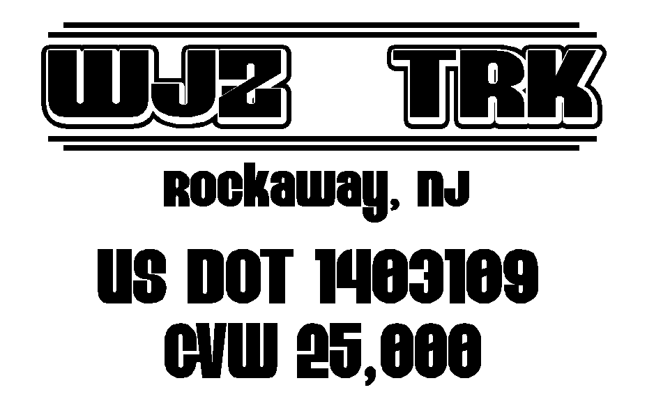 Sign Details: Custom Truck Lettering; Colors black; Desired Fonts and Text WJZ TRK Rockaway NJ us dot 1403109 gvw 25; 999