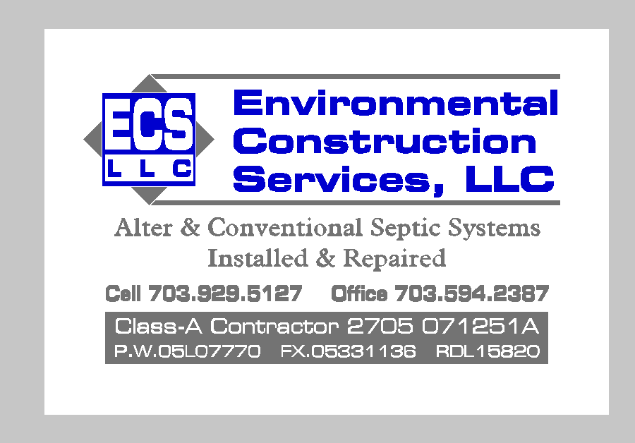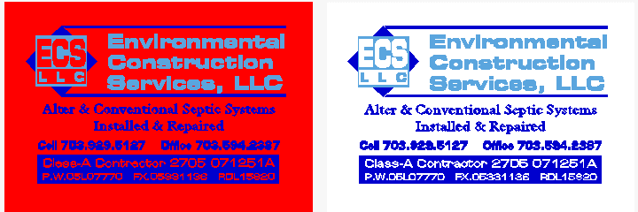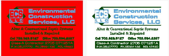 Sign details: Custom Truck Lettering; Size24x36; Colors Olympic Blue; Forrest Green; Desired Fonts and Text Environmental Construction Services; LLC Alter& Convental Septic Systems Installed & Repaired Cell703.929.5127 office 703.594.2387 Class-A Contator 2705 071251A P.W.05L07770 FX.05331136 RDL15820