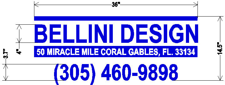 Type of Lettering Custom Truck Lettering; Size 16 x 20; Colors Blue; Desired Fonts and Text Arial Bold Please Center Text. Bellini Design 50 Miracle Mile Coral Gables; Fl. 33134 (305) 460-9898