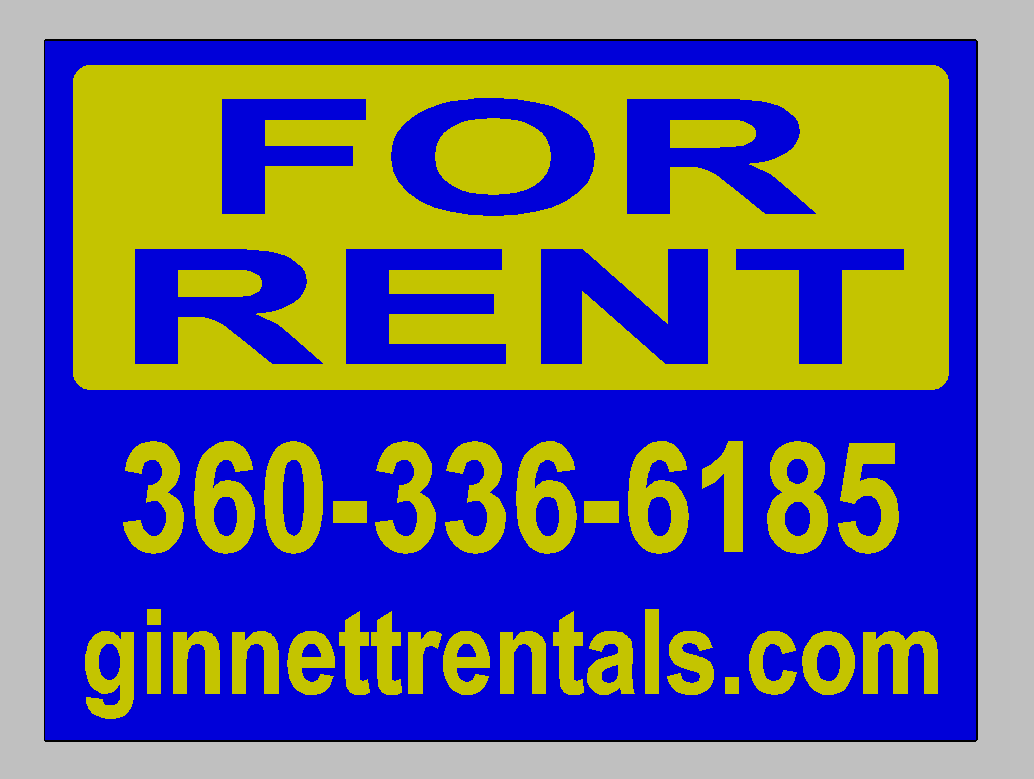 Sign Details: Type of Sign Custom Yard Sign; Size18x24 2 sided Sign; Colors Blue letters/Gold background; Desired Fonts and Text Font: Arial Bold Line 1: FOR (centered across top) Line 2:RENT (centered) Line 3:360-336-6185 (cenetered) Line 4 ginnettrentals.com (centered)