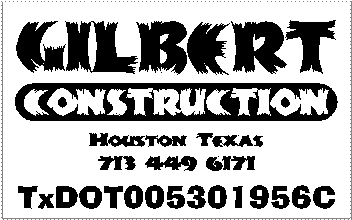 Truck lettering details: Colors Black;  Desired Fonts and Text SCARECROW GILBERT construction Houston Texas 713-449-6171 EH#0034347 TxDot005301956C