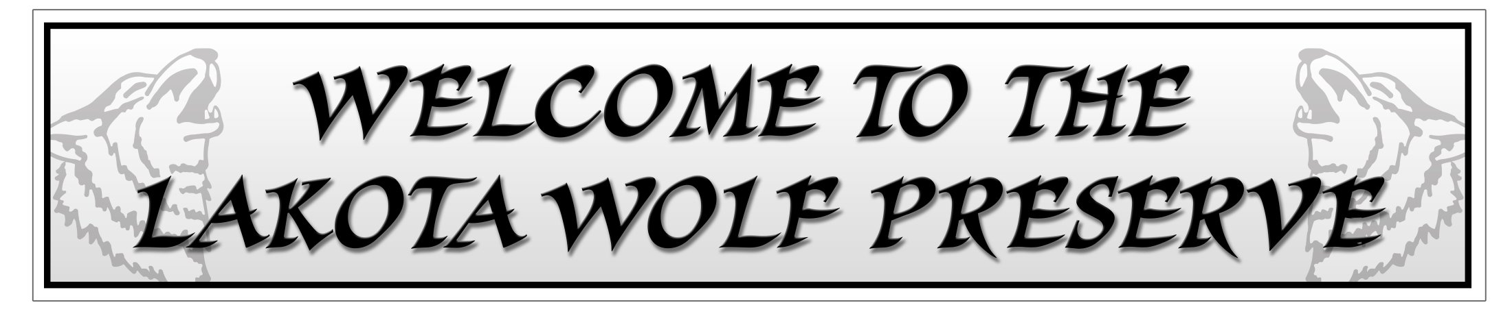 Type of Sign Banner Sign; Size 2’X10′; Colors WHITE BANNER BLACK LETTERS; Desired Fonts and Text Text all capital letters WELCOME TO THE LAKOTA WOLF PRESERVE. Bravehart font