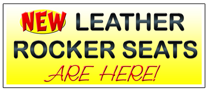 Type of Sign Banner Sign; Size 4′ X 12′; Colors White Banner; Desired Fonts and Text NEW (in red) LEATHER ROCKER SEATS ARE HERE Font Whatever pops out; no cursive. Colors are to your discretion
