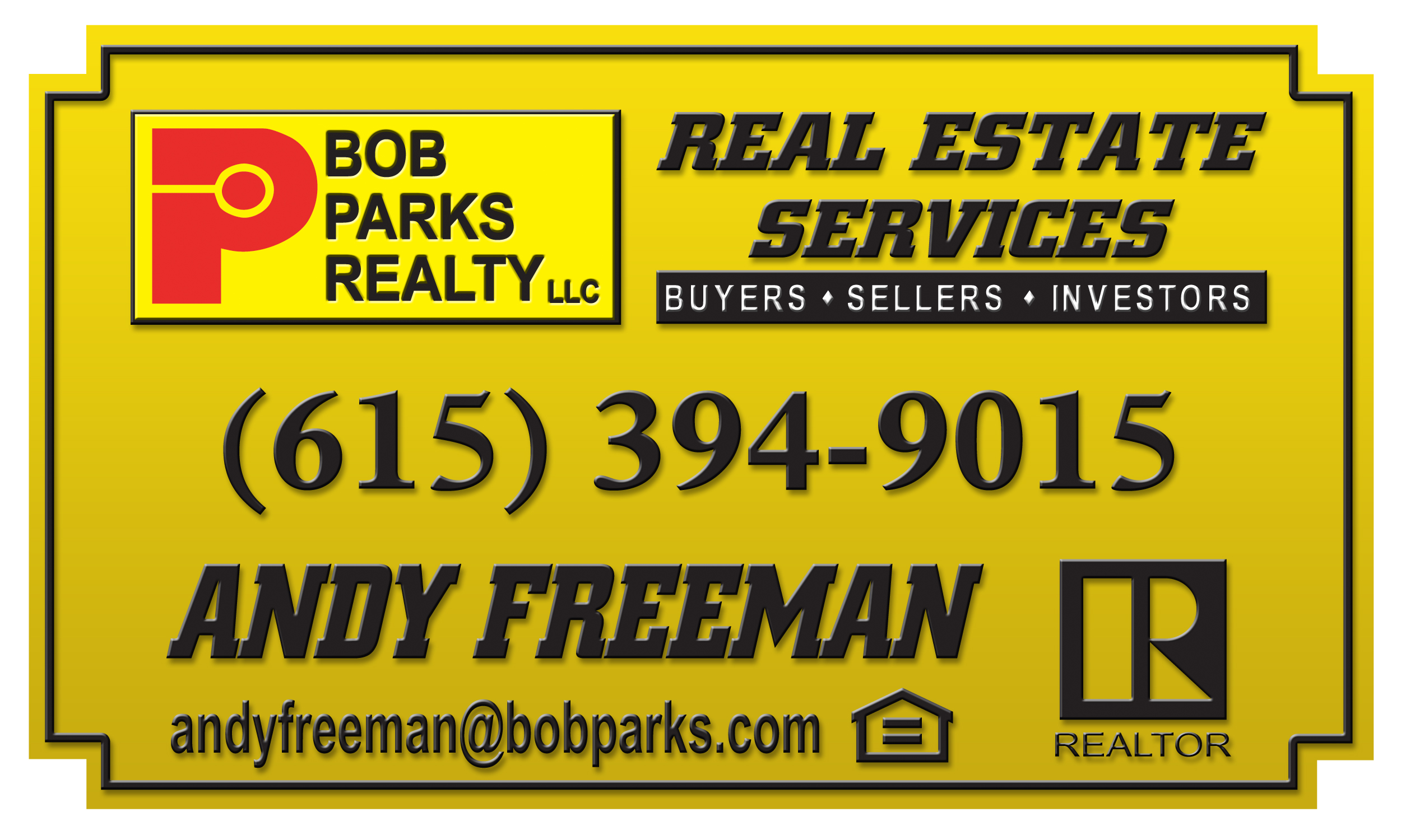 Andy Freeman Affiliate Broker Bob Parks Realty, LLC (615)394-9015 Cell (615)383-6600 Office (615) 383-2151 Fax andyfreeman@bobparks.com E-mail http://www.bobparks.com/afreeman/ www.bobparks.com Website YOUR REFERRALS ARE ALWAYS APPRECIATED!