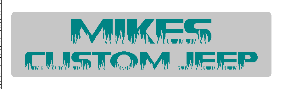 Sign Details: Metal Sign Options = Type of Sign 6″ x 24″; ColorTeal / Silver; Size R or NR NR; Desired Fonts and Text Sign MIKES CUSTOM JEEP Font Che Lives Colors Teal Lettering with Silver background