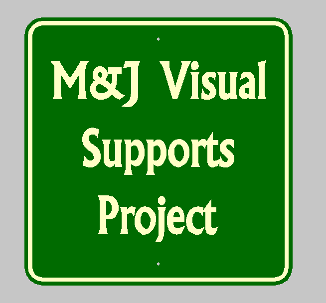 Sign Details: Metal Sign Options = Color FOREST GREEN; Size R or NR18″ X 18″ Desired Fonts and Text FONTFLAIR WORDING / TEXT in color White or cream (prefer Cream text). This is what the sign should read (shared below) M&J Visual Supports Project shown against a gray background