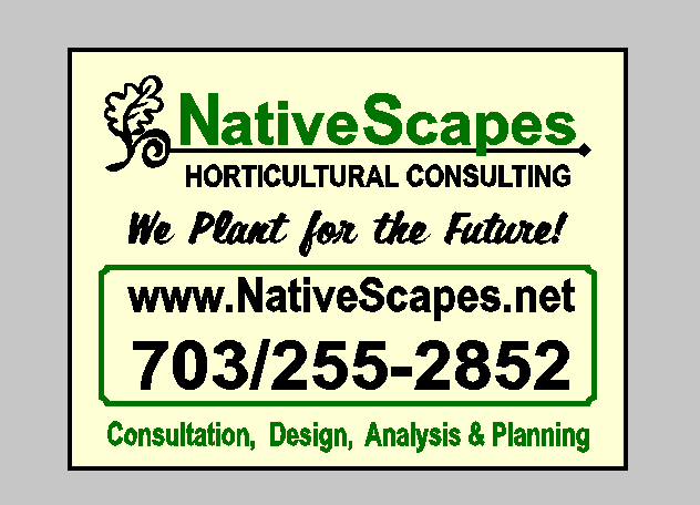 Desired Fonts and Text Arial Bold font. Custom Logo on top. “logo” NativeScapes (small caps style; for. green; larger font) ______________________________________ Horticultural Consulting (normal style; black; smaller than above) We Plant for the Future!(bigger and wider; black) www.NativeScapes.net (black) 703/255-2852 (black)