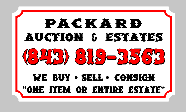 Sign Details: Magnetic Door Signs Options = Size 14 inches by 24 inches Set of 2 Magnetics; Colors see description; Desired Fonts and Text Packard Auction & Estates (color black; saloon font) (843) 819-3563 (color red; saloon font) We buy/ sell/ consign (color black; saloon) “One item or entire estate” (color black; saloon)