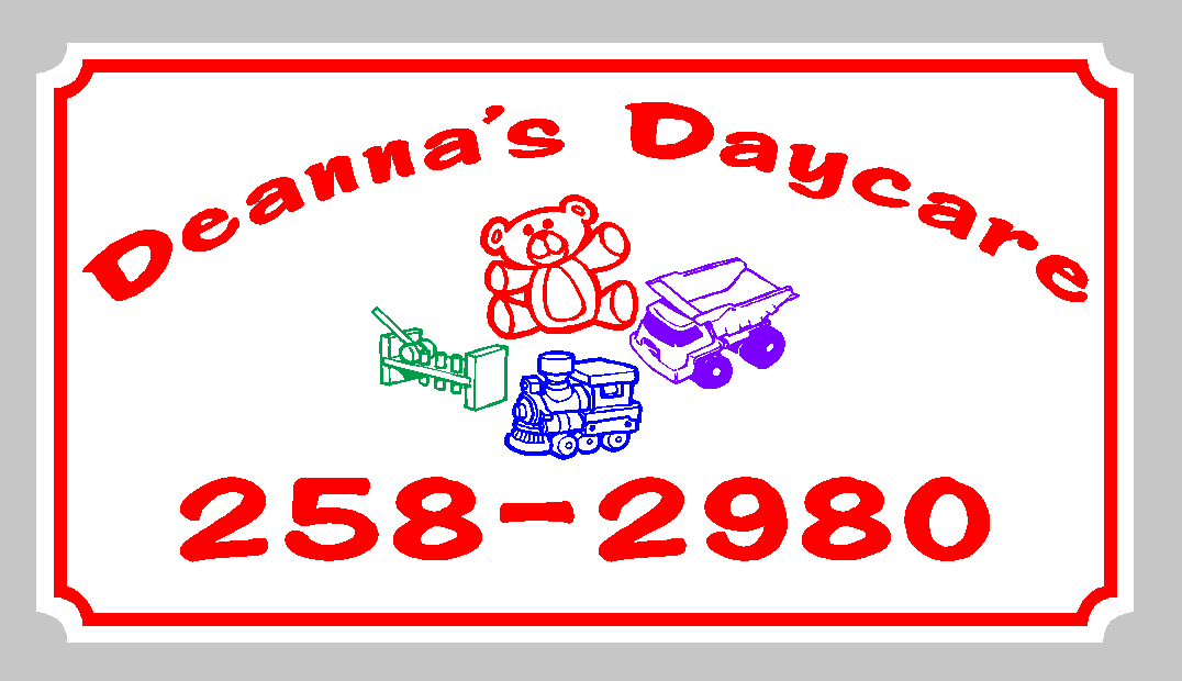 Sign Details – 12×20 Magnetics Colors Red, Purple – Font- Buzz Cut– Deanna’s Daycare 258-2980