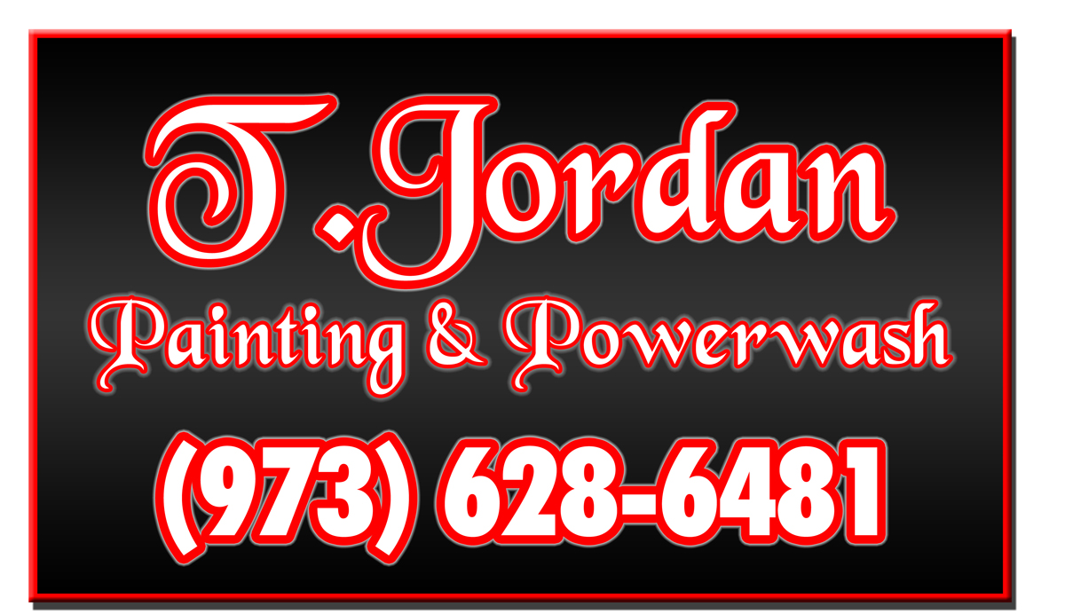 Size 14 inches by 24 inches Set of 2 Magnetics; Colors black background. white lettering with red outline; Desired Fonts and TextT.Jordan Painting & Powerwash (in black chancerey font. (973)628-6481 (in norman normal font). i am open to any suggestions you have.