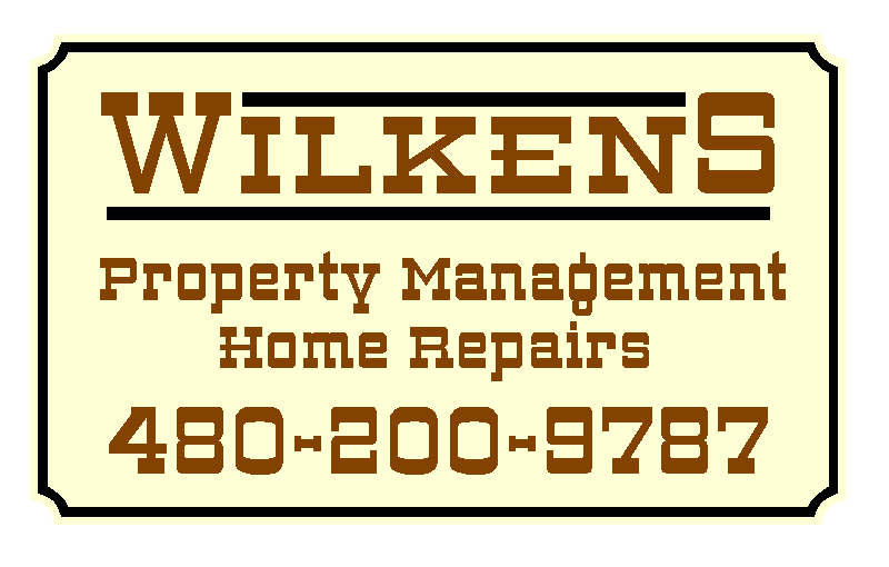 Sign Details: Magnetic Door Signs Options = Size 12 inches by 20 inches Set of 2 Magnetics; Colors tan background w/ brown font; Desired Fonts and Text Steel Moderne font Wilkens Property Management Home Repairs 480-200-9787