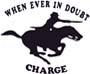 'Whenever in doubt charge' lettering w/ man on horse Decal Customized Online. 0242