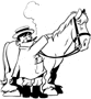 / Agriculture Crops Farming003-0131 Farm horse with cigar smoking man getting ready to climb aboard decal. personalize this sticker with free words and color as you order. It is free and it is easy to do!