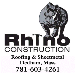 Rhino Construction Roofing & Sheetmetal - Dedham, Mass 781-603-4261 decal customized online. The rhino (animal) will stay the same color, no matter what color is selected below. If a color other than black is desired, please select color below. The white background in picture shows the color of the intended surface - truck surface. If you have any changes to this layout, after you order email the order number along with the changes.