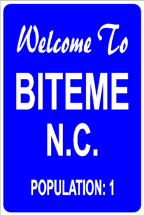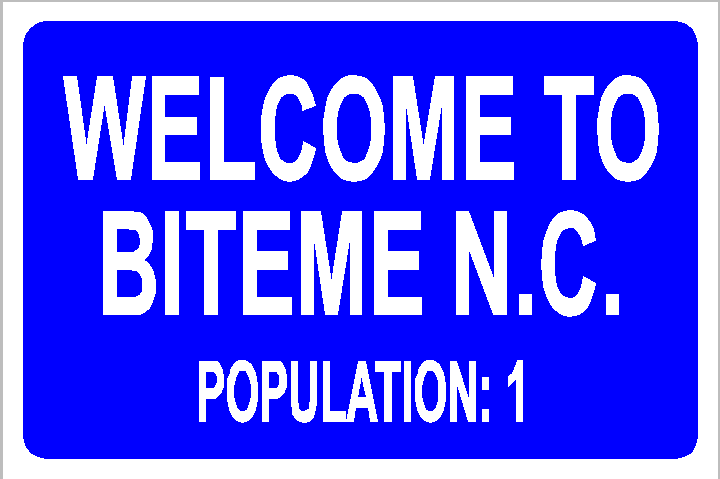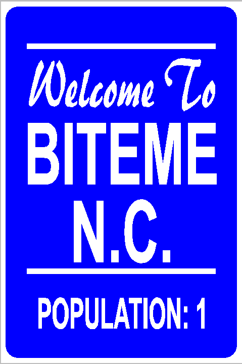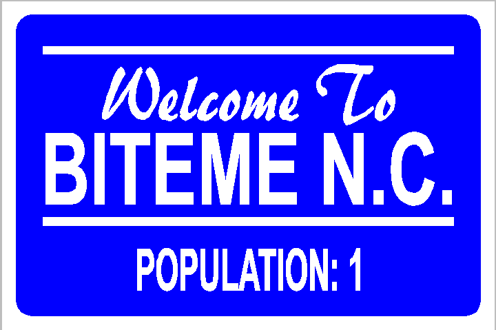 'Welcome to Bite Me N.C.' Custom Road Sign