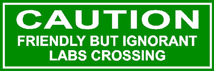 Custom Road Sign "Caution - Ignorant But Friendly - Lab Crossing"