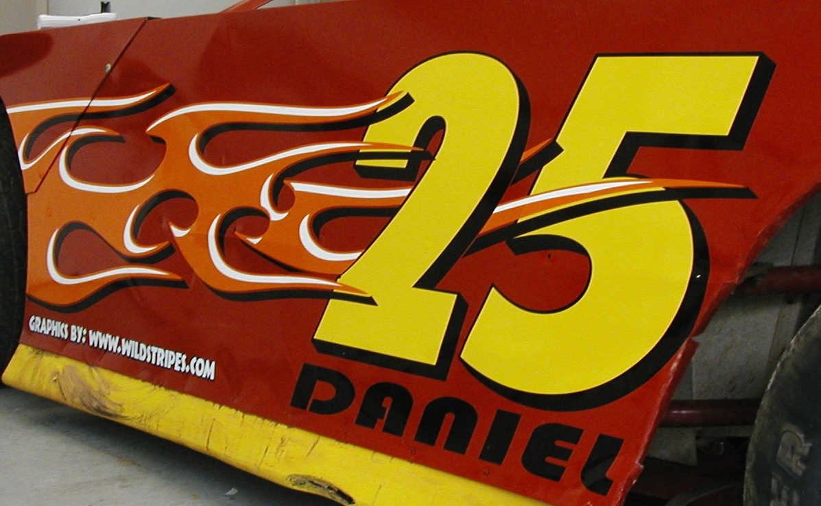 Circle Track Race Car #25 with Tribal Flames "Woven"in the Number