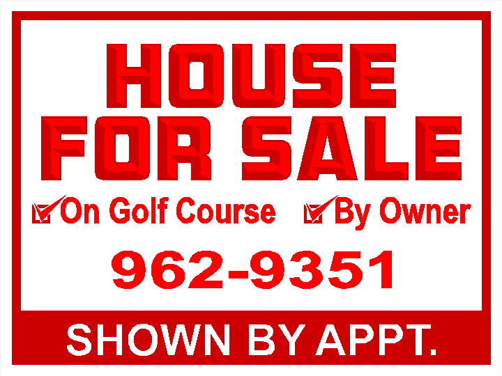 House For Sale by Owner on Golf Course Sign (w/3d letterng)
