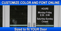 Just Need your Business Hours on your door? Do you have a simple straight forward design idea... and want it cheap? Check out our Hours of Operation 'simple and cheap' design page. Get started by designing at this link.