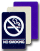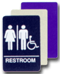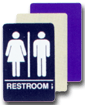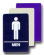 in white on blue, black on taupe, or white on black. No custom orders available.