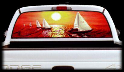 Customize the glass surface of your vehicle and still have virtually an unobstructed view to the outside world. Micro-perforations create a 50% open area in outdoor quality vinyl, which helps reduce the damaging UV exposure. Glas-Scapes apply easily to the outside of your window (Click here for general instructions) and can be removed in minutes. All Glas Scapes products come with complete detailed Installation Instructions.   Fits back glass of all newer pickup trucks and most older models. $87.00
