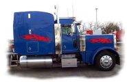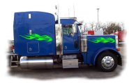 Our Graphic Stripe Department stripes to match your ride. From flame graphics, checkered racing decals, tribal art designs, lightning bolt stripes, freehand splash effects, to your simple flemish pinstripe, we design it all. With 1,000's of templates from our digital auto library, we can draw your graphic to scale. Our striping is not some "off the shelf stock item". These stripes and graphics are designed to fit your Semi